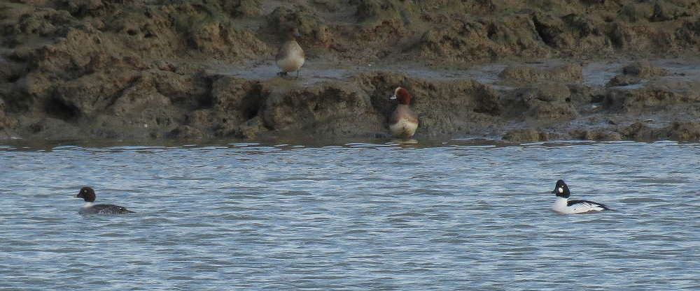 Greenshank, Red-breasted Merganser, Goldeneye, Meadow Pipit, Grey Plover, Snipe, Great-crested Grebe, Water Rail, Song Thrush,
